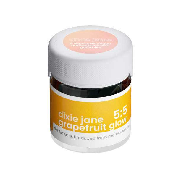 Experience the perfect equilibrium with Dixie Jane Grapefruit Glow Gummies. Each piece is precisely infused with a balanced 5mg of THC and 5mg of CBD, designed to deliver a smooth, gentle feeling of calm and clarity without intense psychoactivity.